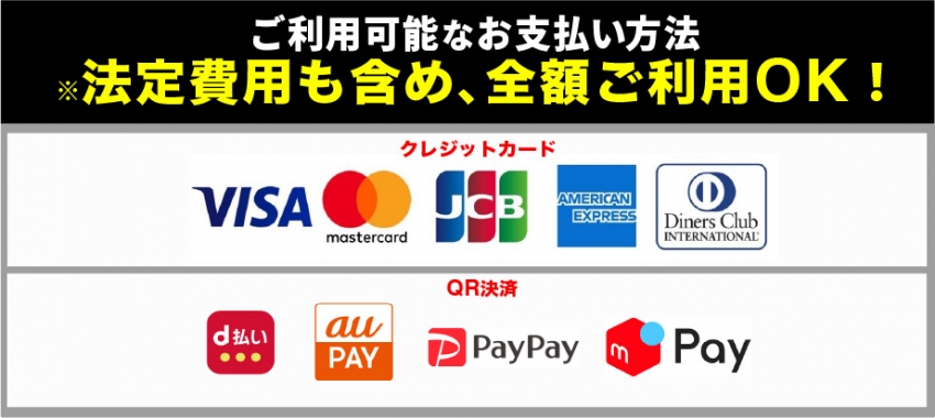 ※法定費用を含め、全てのお支払いをカードもしくはQRコード決済でしていただくことも可能となっております!