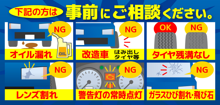 ※ 45分以内の方には代車はご遠慮頂いております。ご容赦下さい。